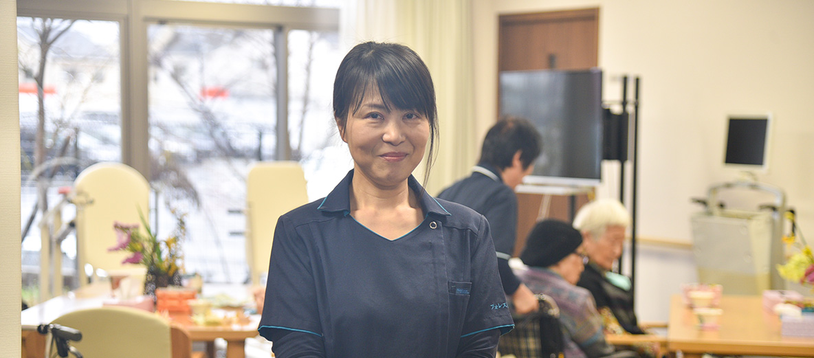 フォレスト真野に入職後、現在は通所介護事業所の管理者を務めています。